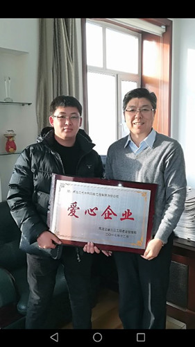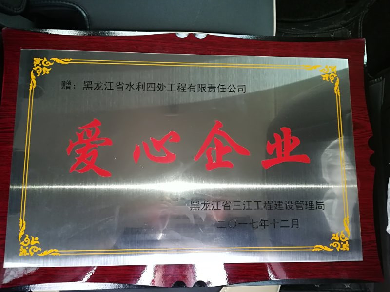 近日,从黑龙江省三江工程建设管理局传来喜讯,我公司被授予“爱心企业”称号。黑龙江省三江工程建设管理局党委书记王波亲自为我公司颁发了奖牌,郭纯宝同志代表公司参加了授牌仪式。